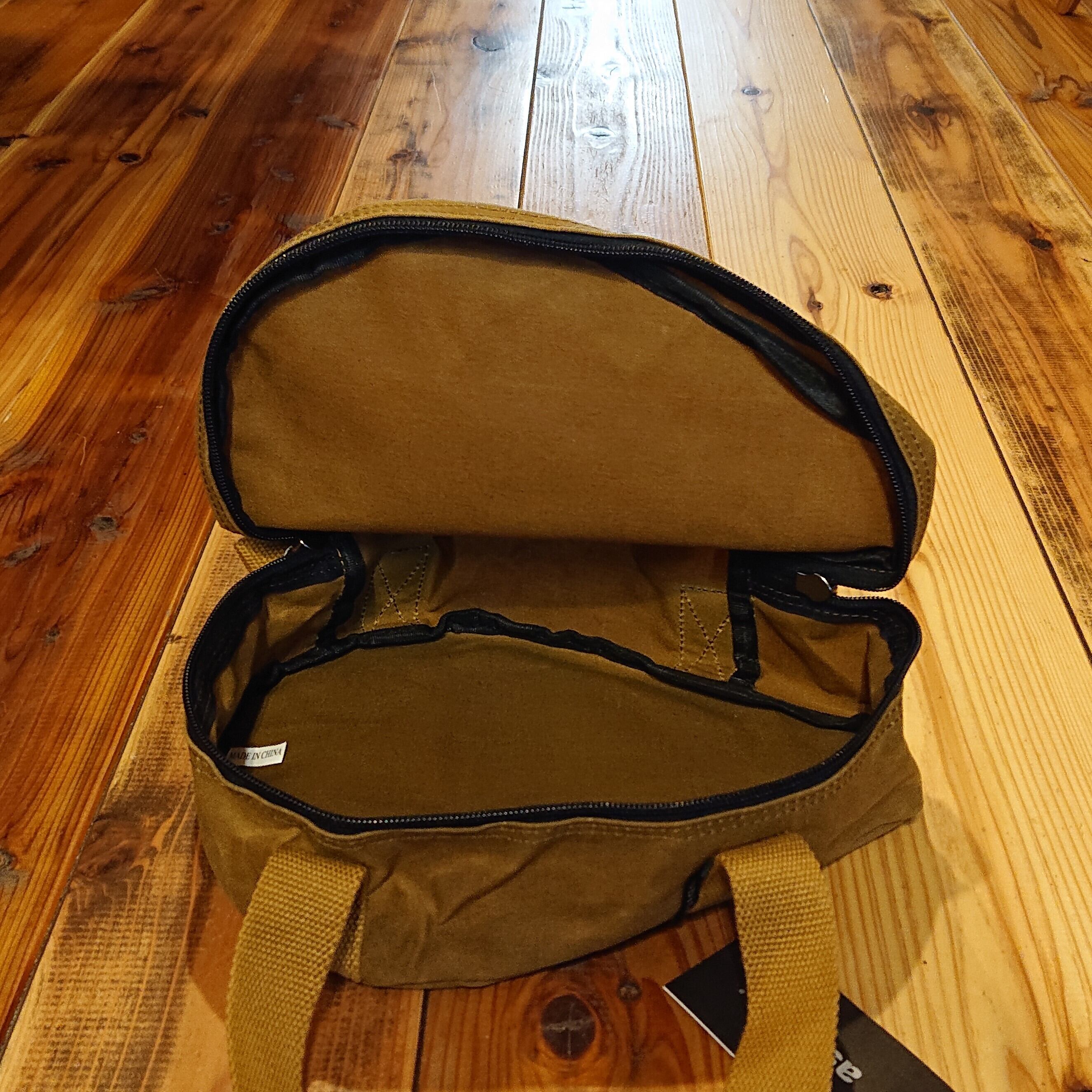 ・丈夫な帆布生地なので、重たいスキレットを重ねて収納